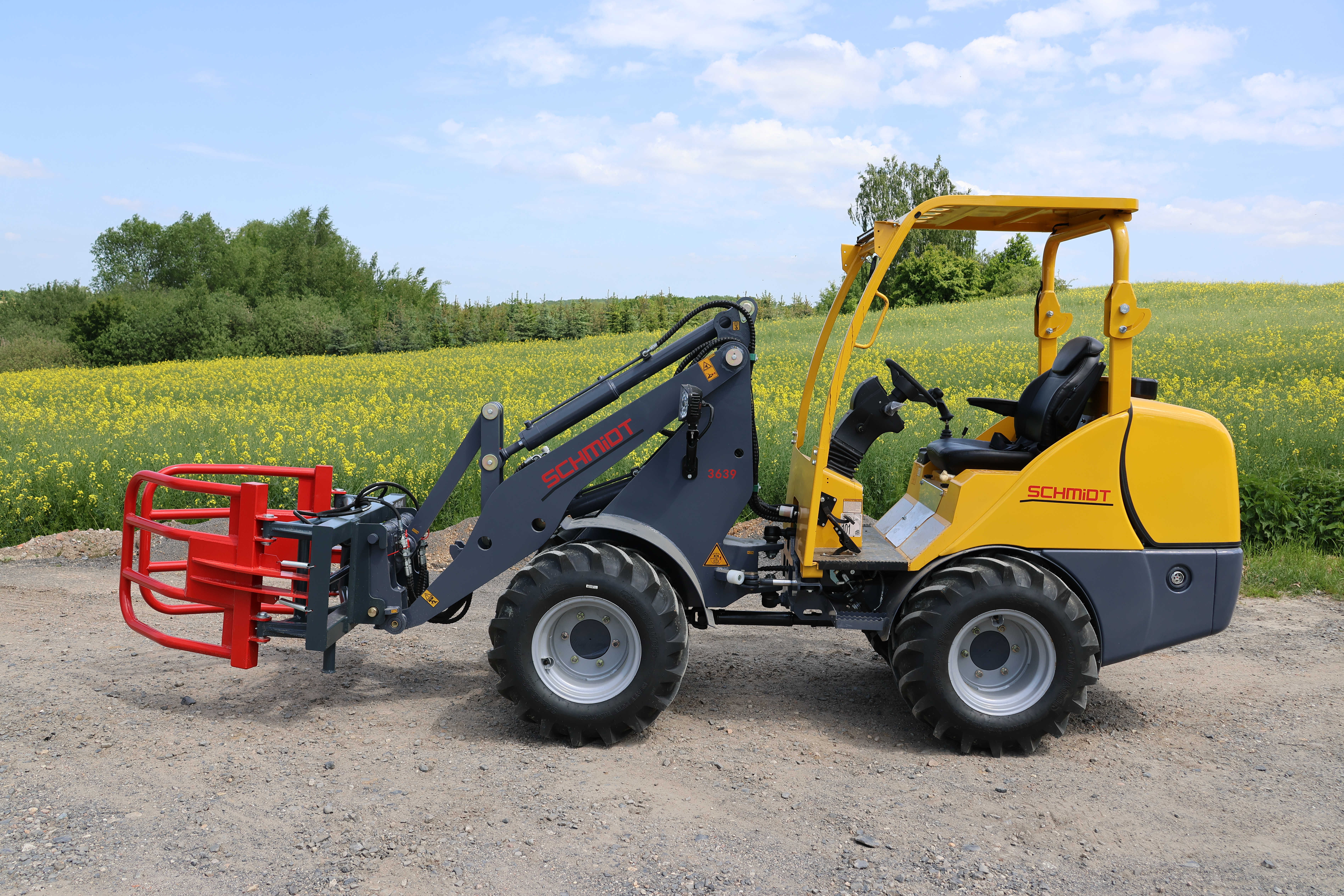 Dzięki prasie hydraulicznej operator ładowarki kołowej może operować ładunkiem i przenosić wiązki bez uszkadzania ich folii lub siatki.