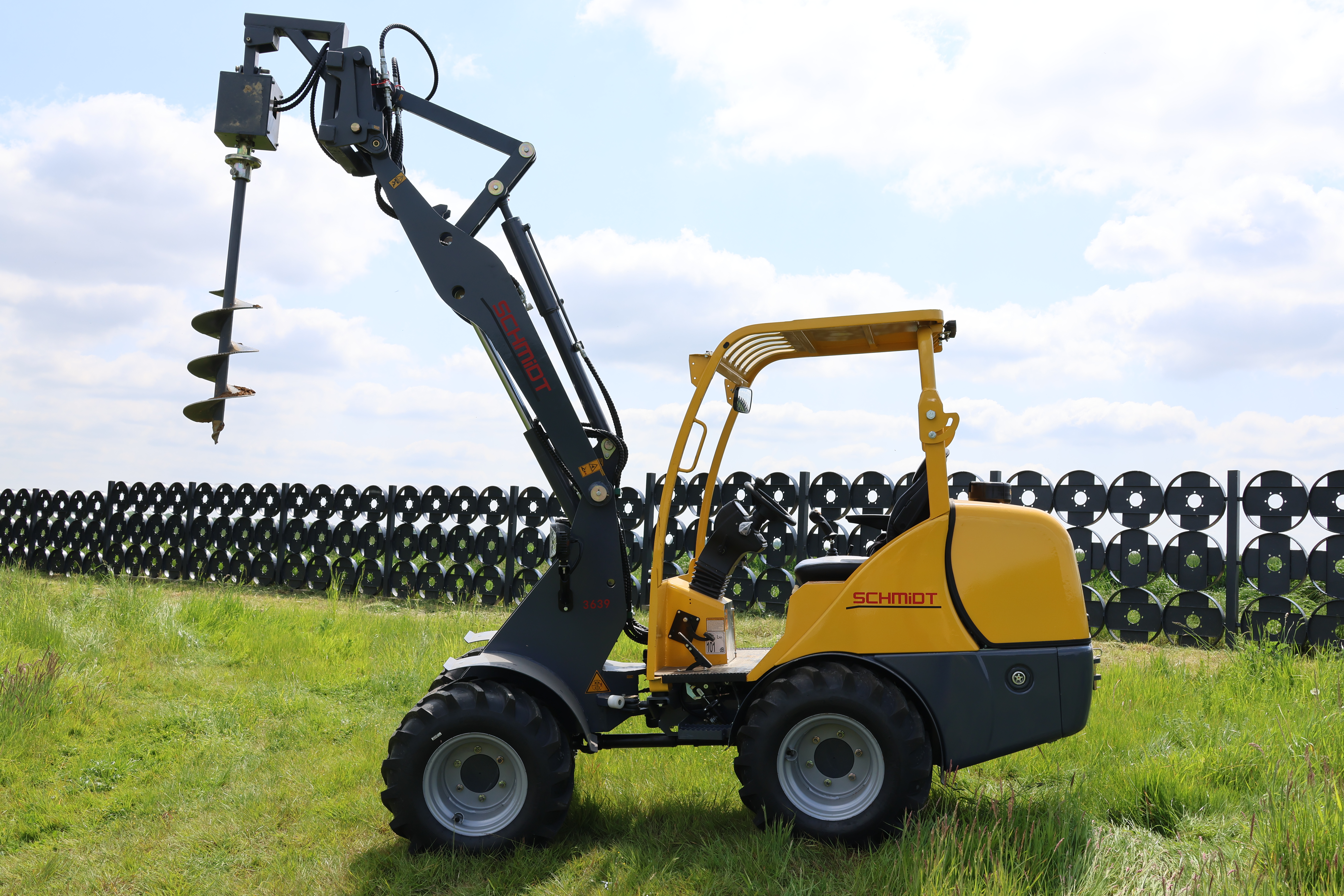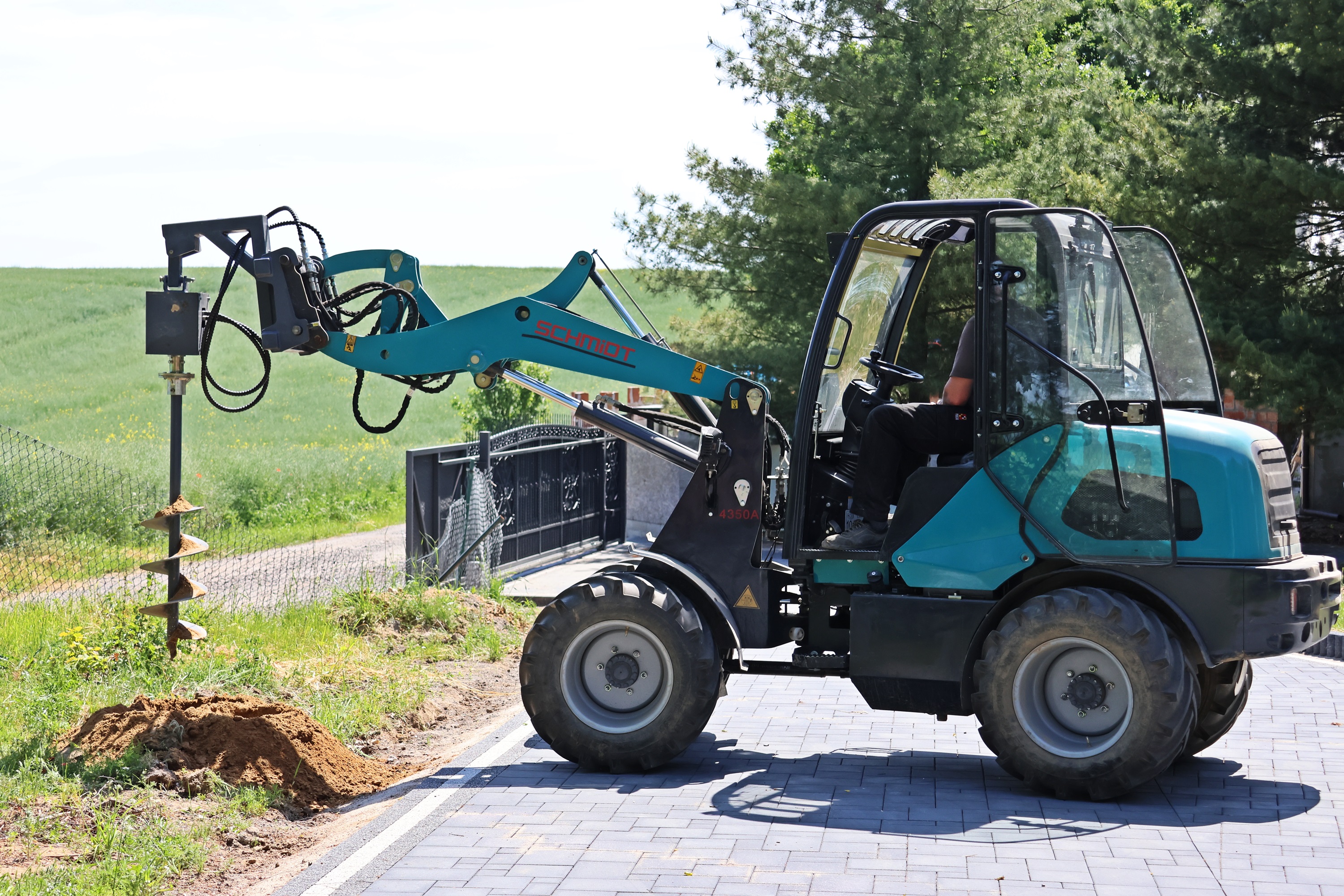 Wiertnica do ziemi jest połączona za pomocą szybkozłącza hydraulicznego poprzez płytę łączącą z ładowaczem czołowym za pomocą dwóch sworzni hydraulicznych obsługiwanych z kabiny ładowarki.